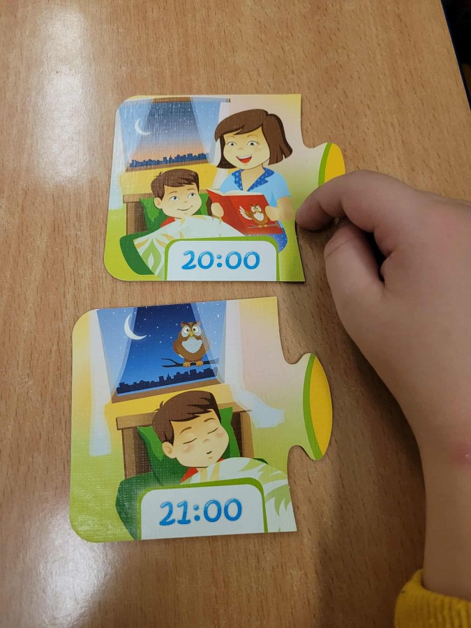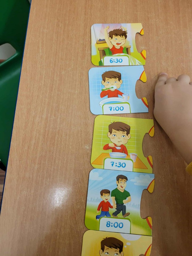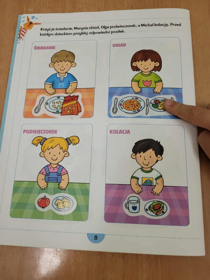 15 października dzieci zapoznały się porami dnia i nazwami posiłków. Układały cykl ilustracji przedstawiających dzień Piotrusia. Dzieci starsze uczyły się odczytywania godzin na zegarze.