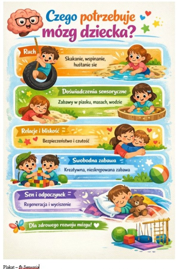 Oto szczegółowe potrzeby rozwijającego się mózgu dziecka: