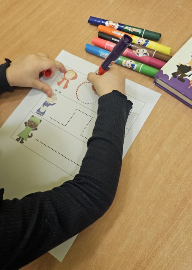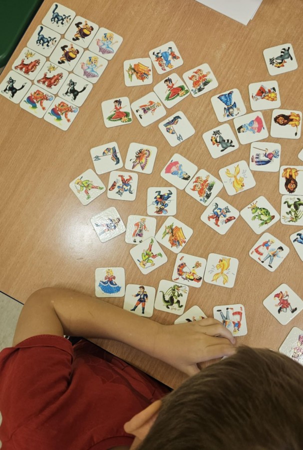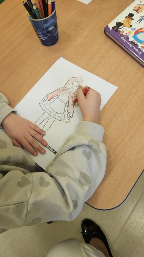 W Dniu Postaci z Bajek w gabinecie pedagoga dzieci obcowały z pięknymi utworami literackimi. Czytały, oglądały, słuchały ulubione bajki. Kolorowały, dopasowywały pary takich samych bohaterów. Odkodowywały kolorowe ilustracje korzystając z zasobów percepcyjnych, poznawczych.