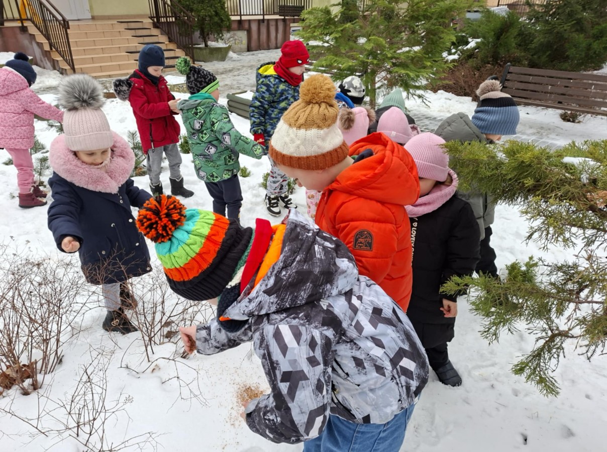Hu, hu, ha Nasza zima zła. Dzieci z grupy Wiewiórki pamiętają o skrzydlatych przyjaciołach, bo zima to dla ptaków ciężki czas. Ziarna zbóż i słonecznika to prawdziwe smakołyki. Smacznego ptaszki.