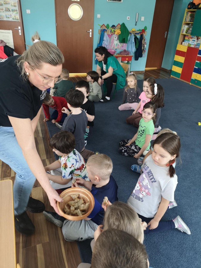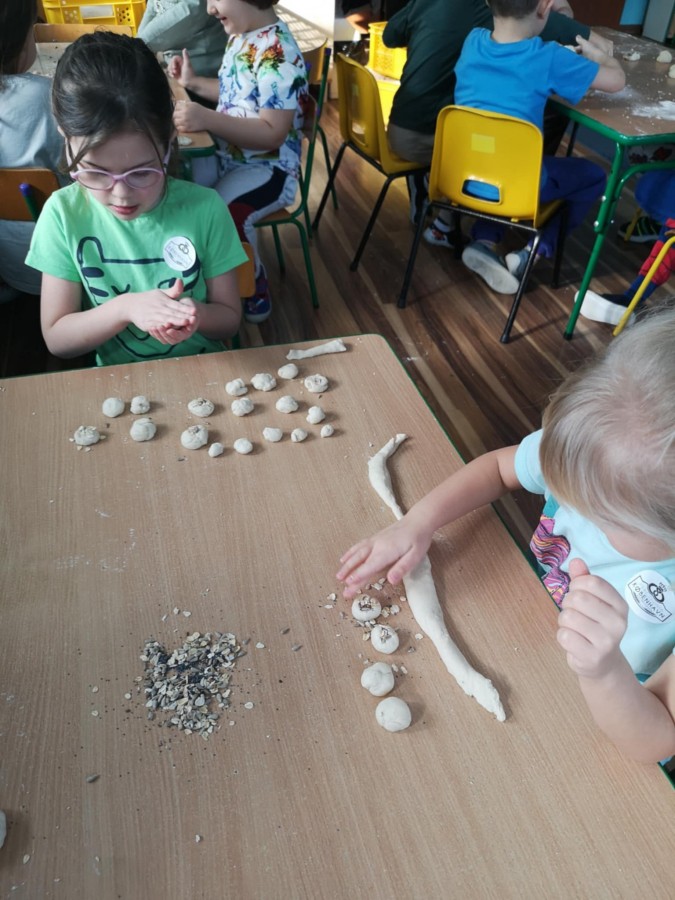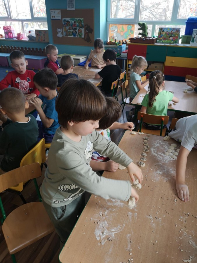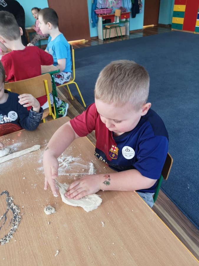 20.02. w przedszkolu odbyły się warsztaty piekarnicze, które miały na celu zwiększenie świadomości w zakresie wiedzy o historii, produkcji i spożyciu pieczywa. Piekarze nie tylko przedstawili sposób w jaki powstaje pieczywo, ale także wyjaśnili jaki chleb jest zdrowy. Dzieci miały okazję przyjrzeć się jak wygląda praca piekarza, jak powstaje pieczywo oraz jak wygląda naturalny zakwas. Poznały różnego rodzaju mąki , każdy mógł poczuć się jak prawdziwy piekarz przygotowując swoje wypieki z gotowego ciasta dostarczonego prosto z piekarni.