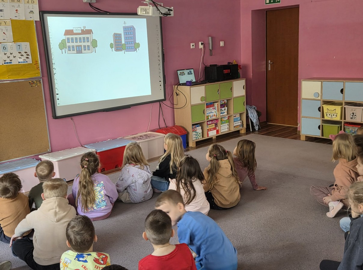3 marca 2026r. dzieci z grupy IV i V w ramach zajęć - Kino w przedszkolu uczestniczyły w projekcji filmu edukacyjnego na dużym ekranie pt. " Poradnik młodego filmowca*. Dzieci dowiedziały się jak powstaje film, kolejne etapy oraz jak można go zrobić realizując swoje pomysły już od najmłodszych lat.