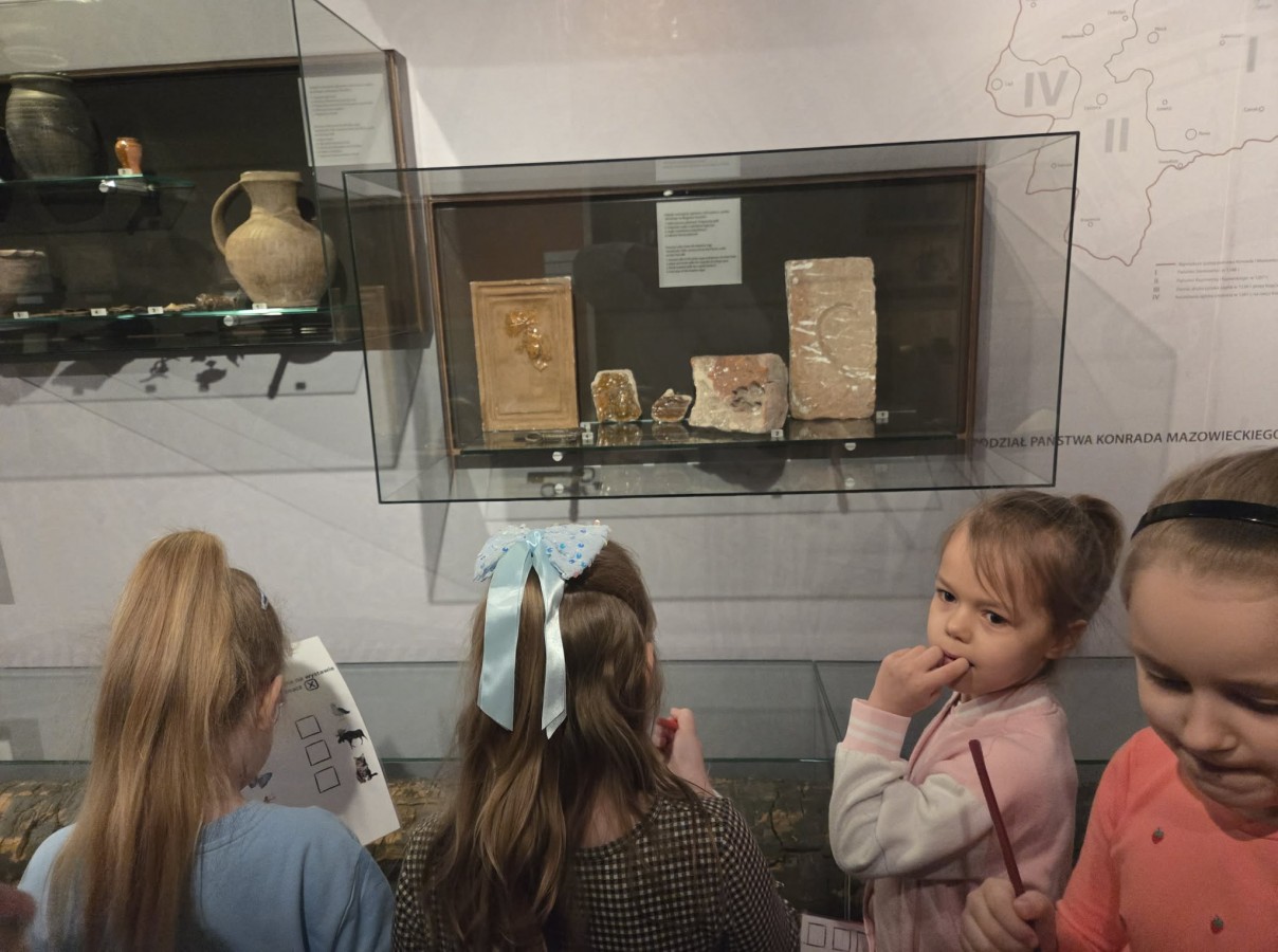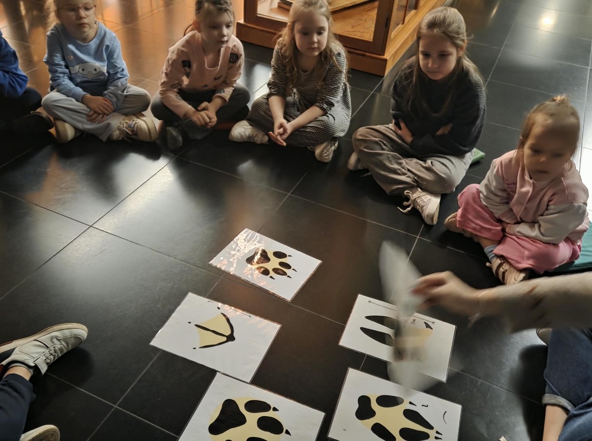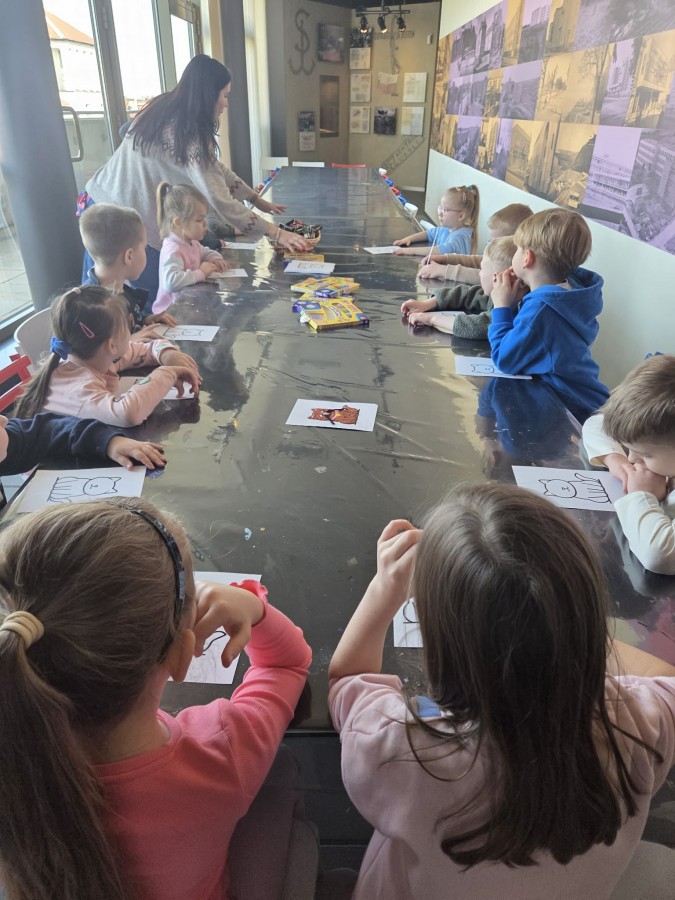dzieci miały okazję aktywnie uczestniczyć w poszukiwaniu po ekspozycji „X wieków Płocka”, różnych gatunków zwierząt. Podczas tych mini-podchodów wypatrywały ich nie tylko w gablotach, ale także na ogromnej makiecie. Druga część zajęć to praca plastyczna. Zadaniem dzieci było kolorowanie sympatycznych kotów, które przybierały najróżniejsze kolory. Zadowolone i pełne wrażeń zabrały swoje prace do przedszkola.