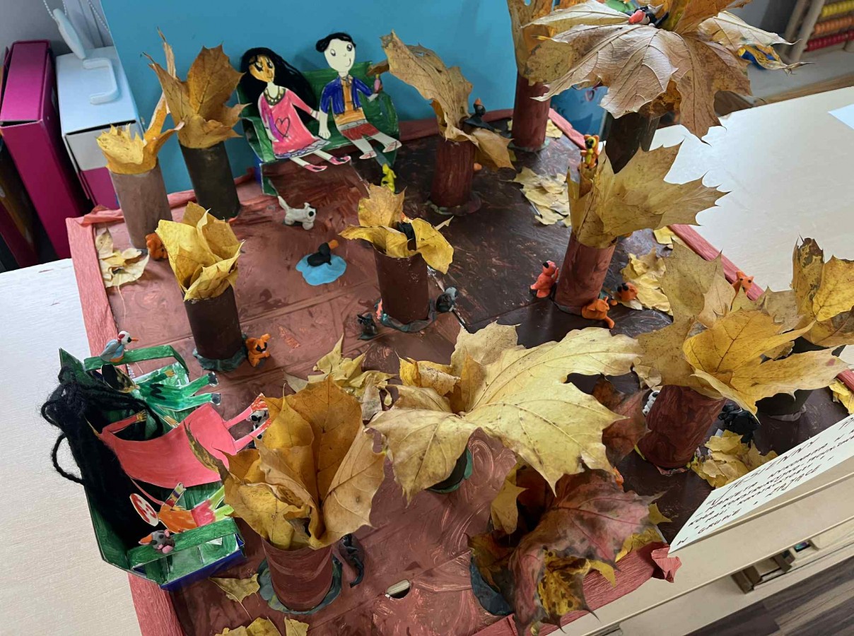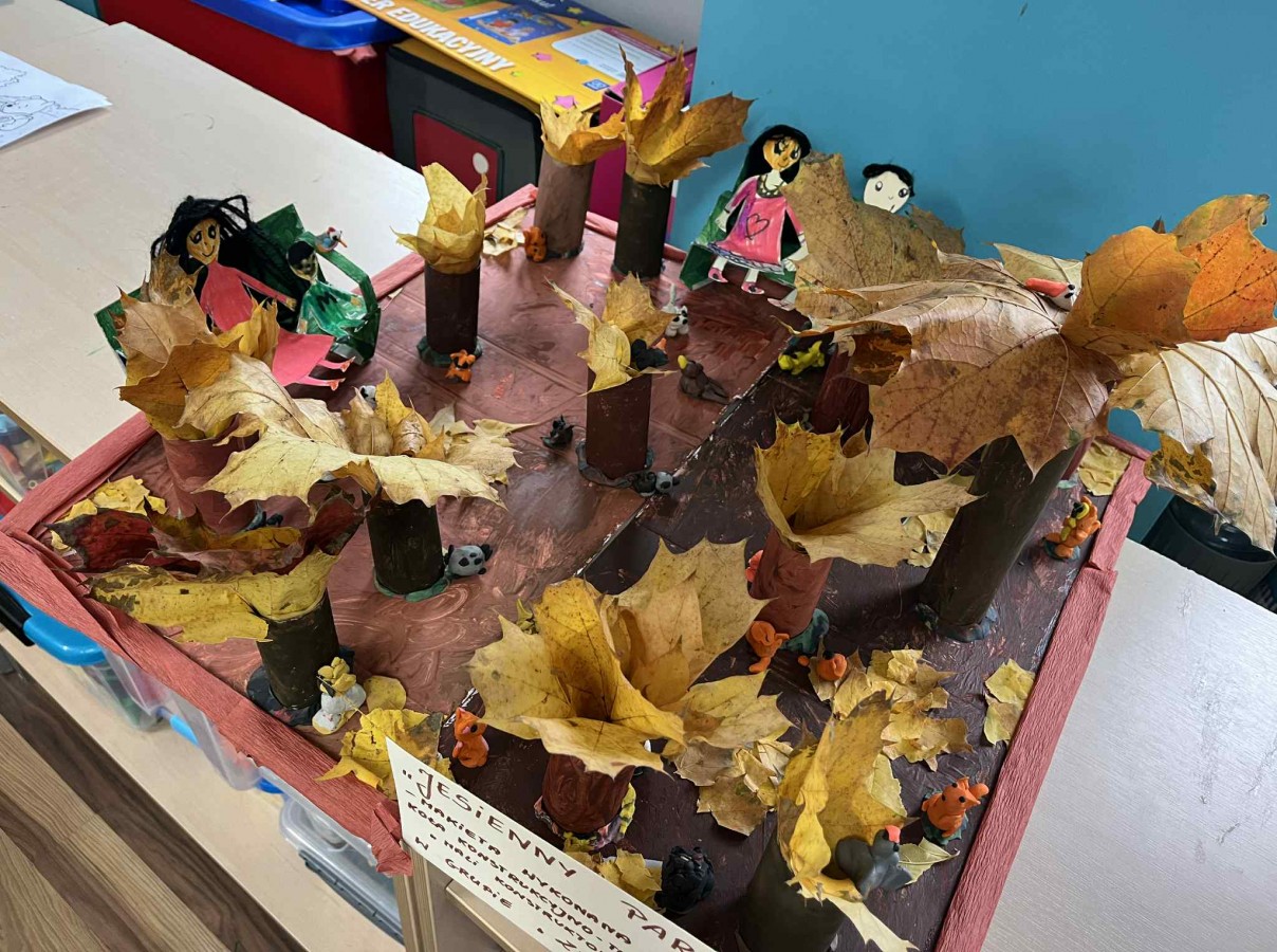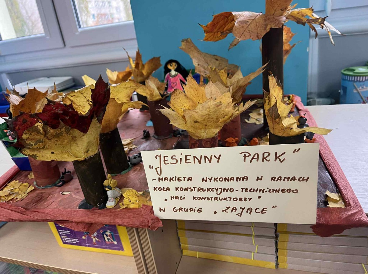 „Jesienny park” - makieta wykonana przez dzieci z gr Zające podczas zajęć w ramach koła konstrukcyjno - technicznego „Mali konstruktorzy”