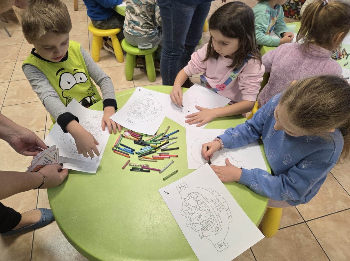 Dzieci miały okazję wysłuchać opowiadania pt. "O wróbelku Elemelku pustym brzuszku i rondelki". Utrwaliły sobie informacje na temat jesieni. Dowiedziały się o zwyczajach zwierząt przygotowujących się do zimy. Rozwiązywały zagadki słowno - obrazkowe i na koniec każdy wykonał swoją pracę plastyczną.